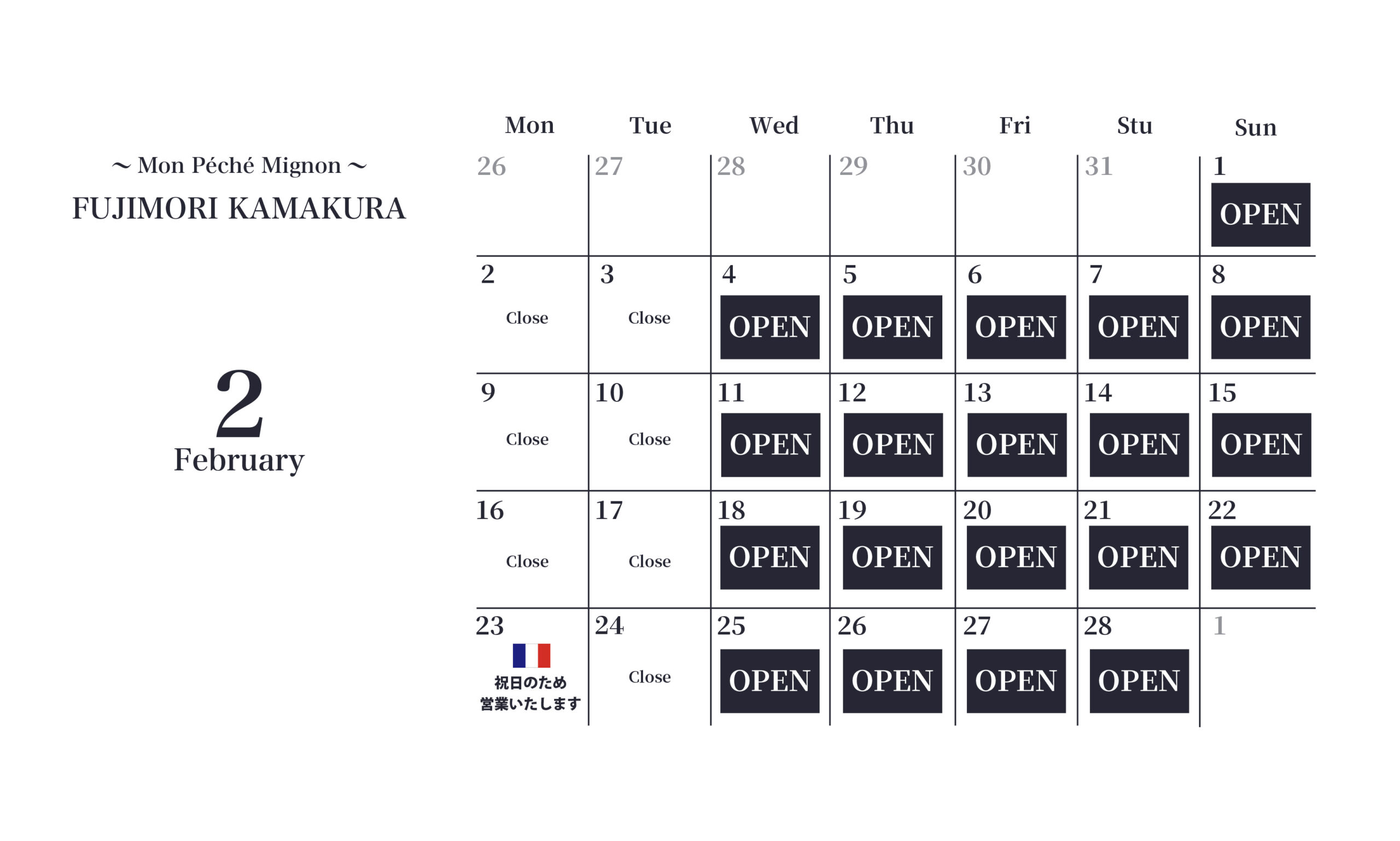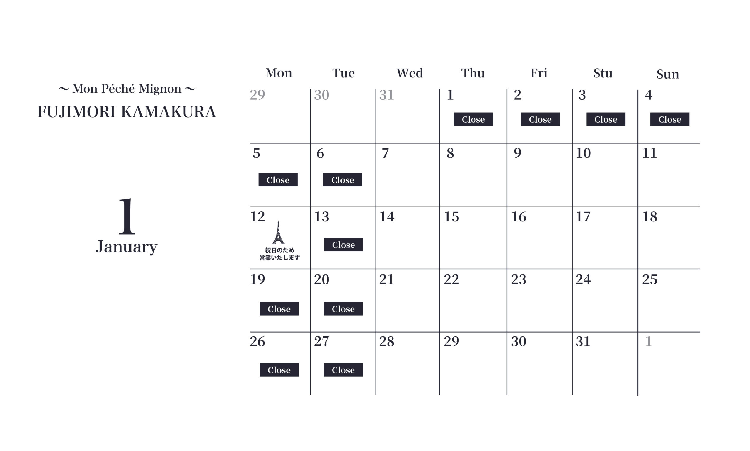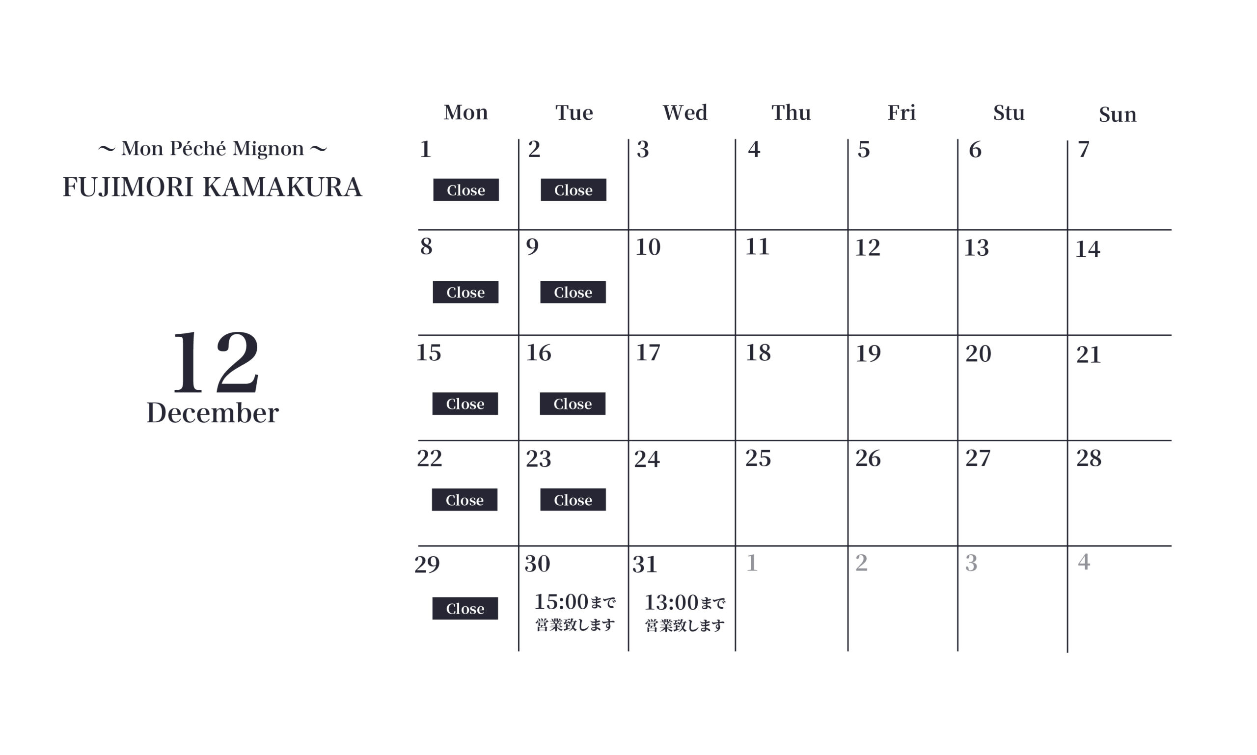 ◆ FUJIMORI鎌倉店 モンペシェミニョンのお休み