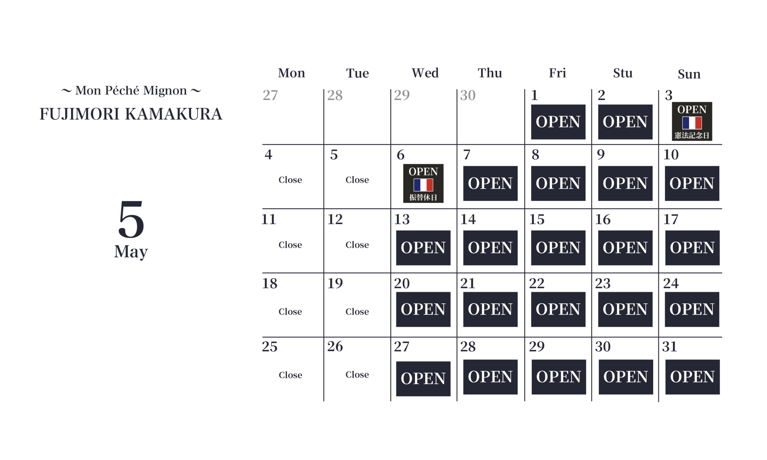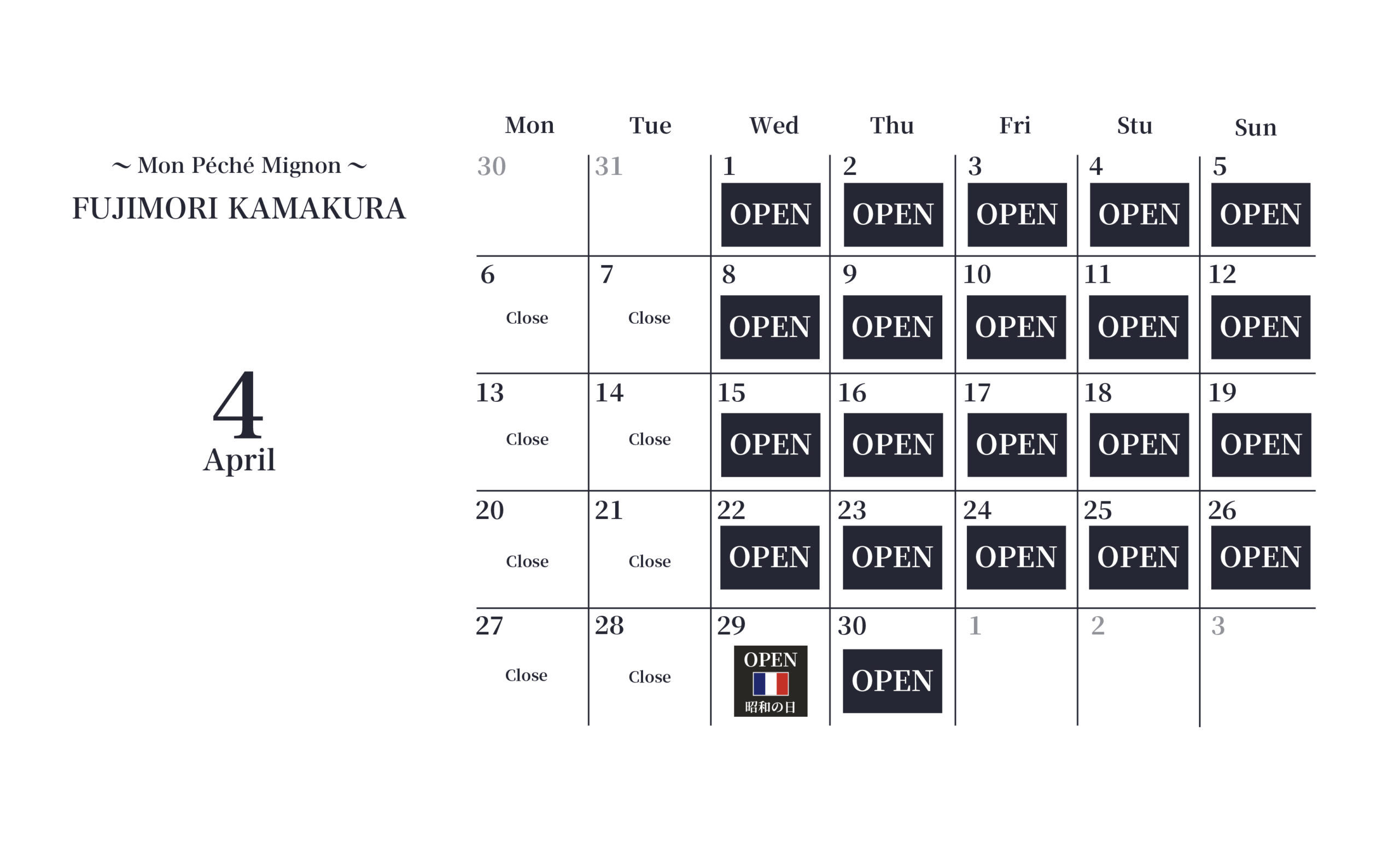 4月・5月の店舗営業スケジュールは以下のとおりとなります。