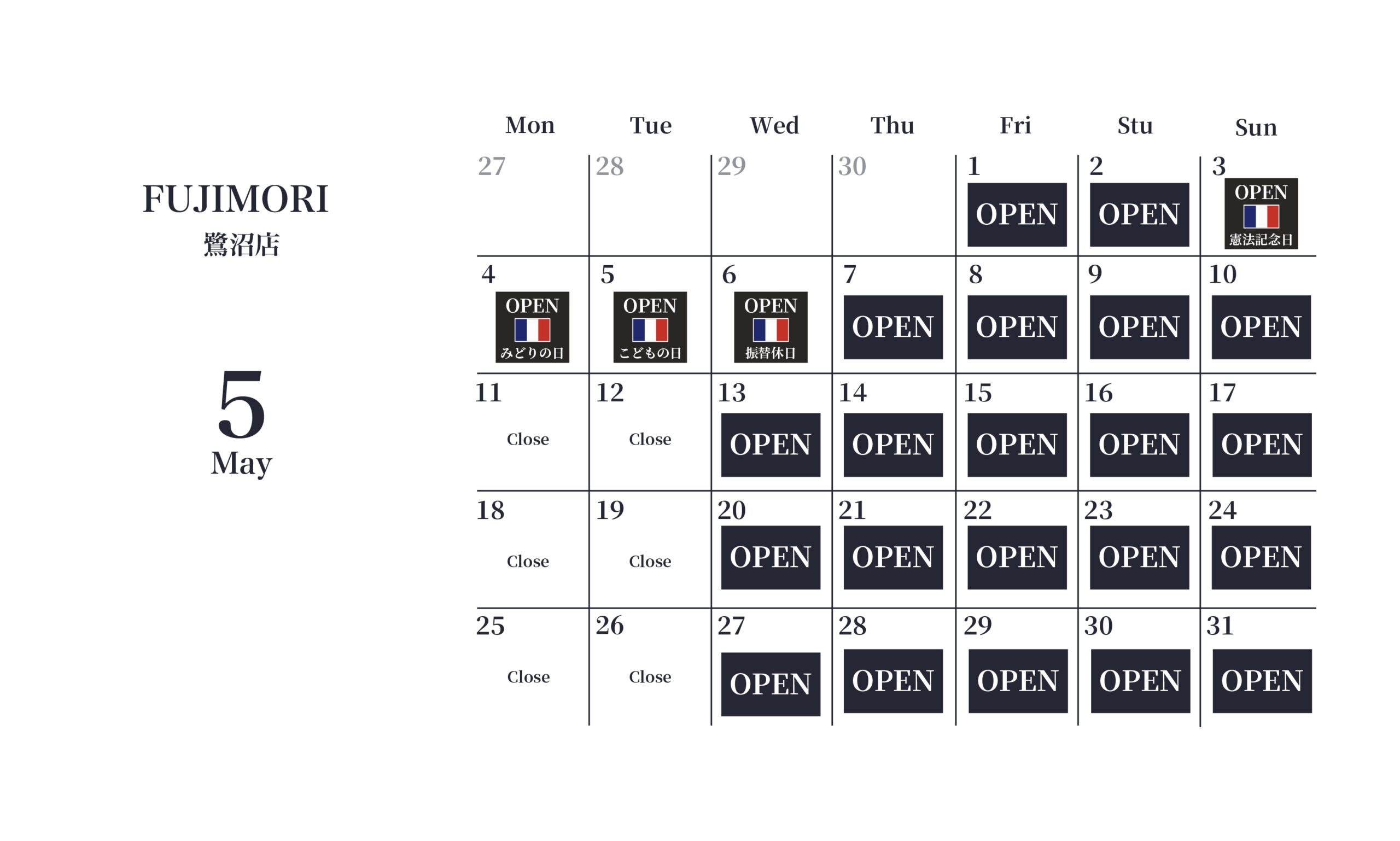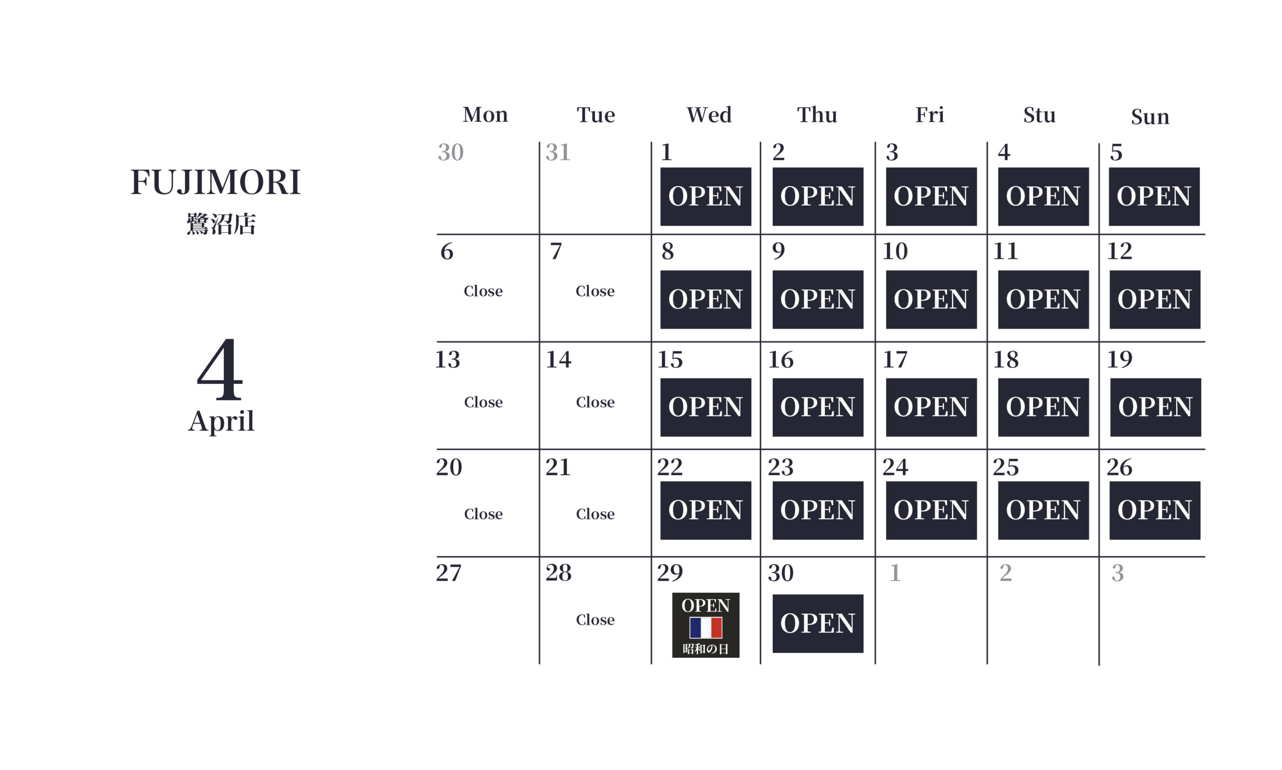 ◆ FUJIMORI鷺沼店の営業スケジュール